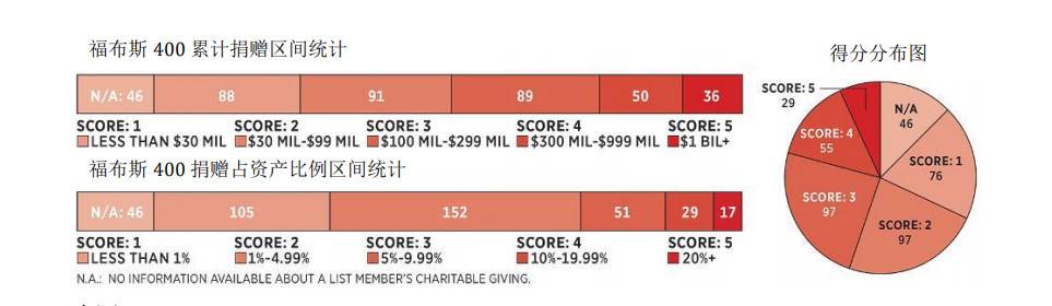 随着财富集中的加剧,一些超级富豪为慈善事业贡献了越来越多的捐赠资源。2018年 10 月,福布斯在公布美国 400 富豪榜的同时,也设计了一套“慷慨指标”对 400 富豪榜进行排名。位居榜首的是“捐赠誓言”联合发起人比尔·盖茨和沃伦·巴菲特,两人累计捐款额分别为 358 亿美元和 351 亿美元。乔治·索罗斯(George Soros)则以 320 亿美元排第 3位。与此相印证,苏珊·沃尔夫·迪特科夫(Susan Wolf Ditkoff)等人发现,美国最富有的 2000 个家庭支配 4.2 万亿美元财富,这一数字是八年前的两倍。这些美国人大多数年龄较大,通常都会捐出巨额资金,在 2017 年捐赠额约为 450 亿美元。