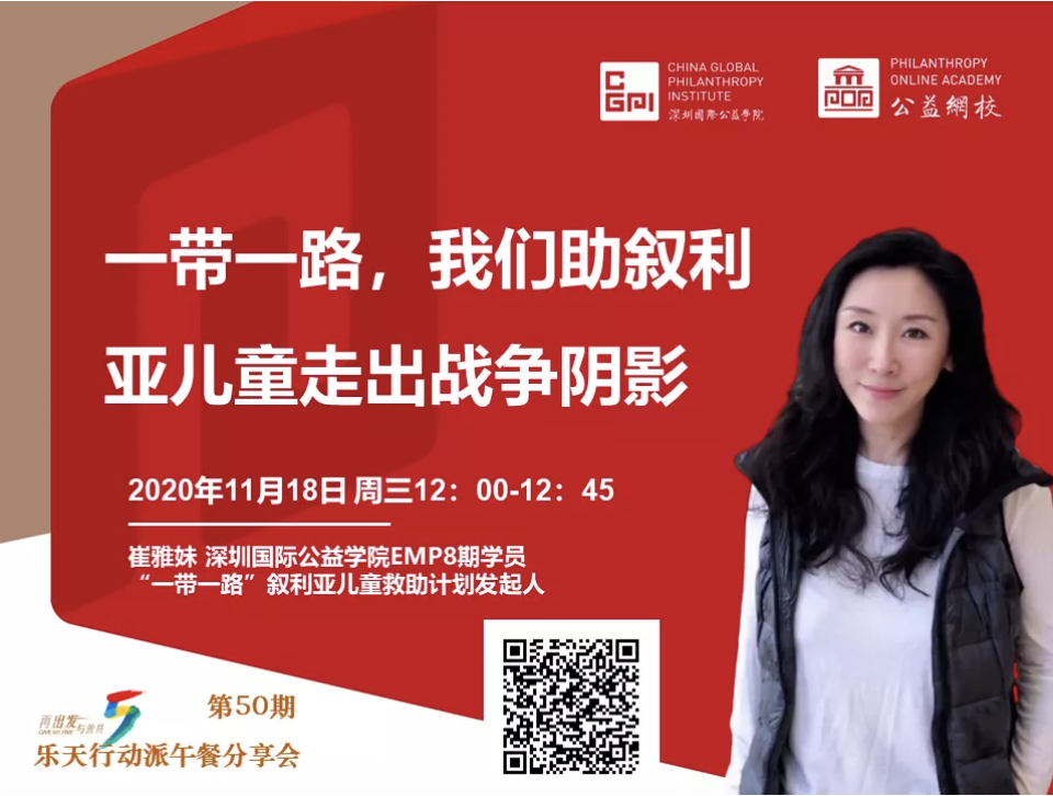 本期我们邀请到深圳国际公益学院EMP8期校友,“一带一路”叙利亚儿童救助计划发起人崔雅妹,来分享她的公益故事。