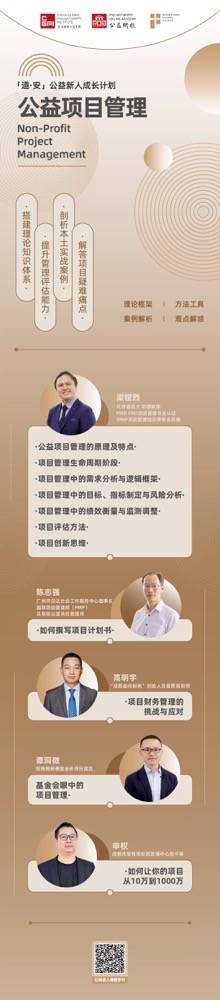 这些都没问题!我们也为您提供《公益新人成长计划二期-公益项目管理》课程,识别下方海报二维码,加入课程,您就能在公益网校上自主学习啦!